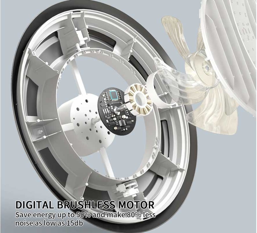 Beyond cooling, this model features an integrated lighting system for complete room ambiance control. The 60W dual-color main light offers versatile illumination, while the 10W RGB environment light creates customizable mood lighting. For enhanced comfort, it includes Nature and Sleep wind simulation modes, delivering a more natural and relaxing airflow experience. Convenient operation is ensured through an RF remote control, allowing effortless adjustment of both fan and lighting functions. Designed for modern smart living, the Ceiling Light and Air Hub delivers efficient cooling and dynamic lighting in one compact unit.